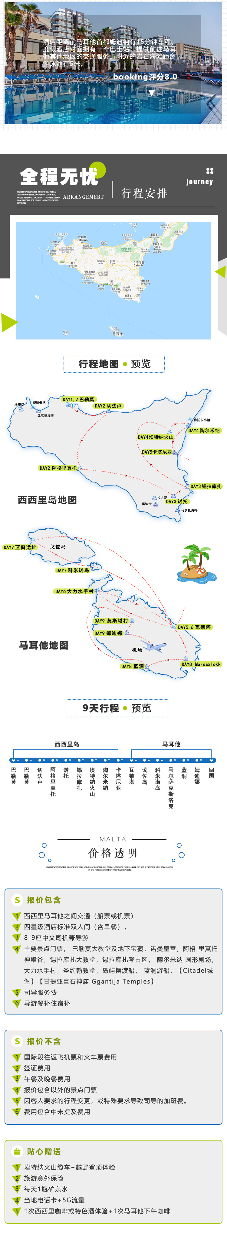 9天8晚一次性游览地中海2大网红热门度假岛屿 文化遗产巡礼巴勒莫 阿格里真托 锡拉库扎 陶尔米纳